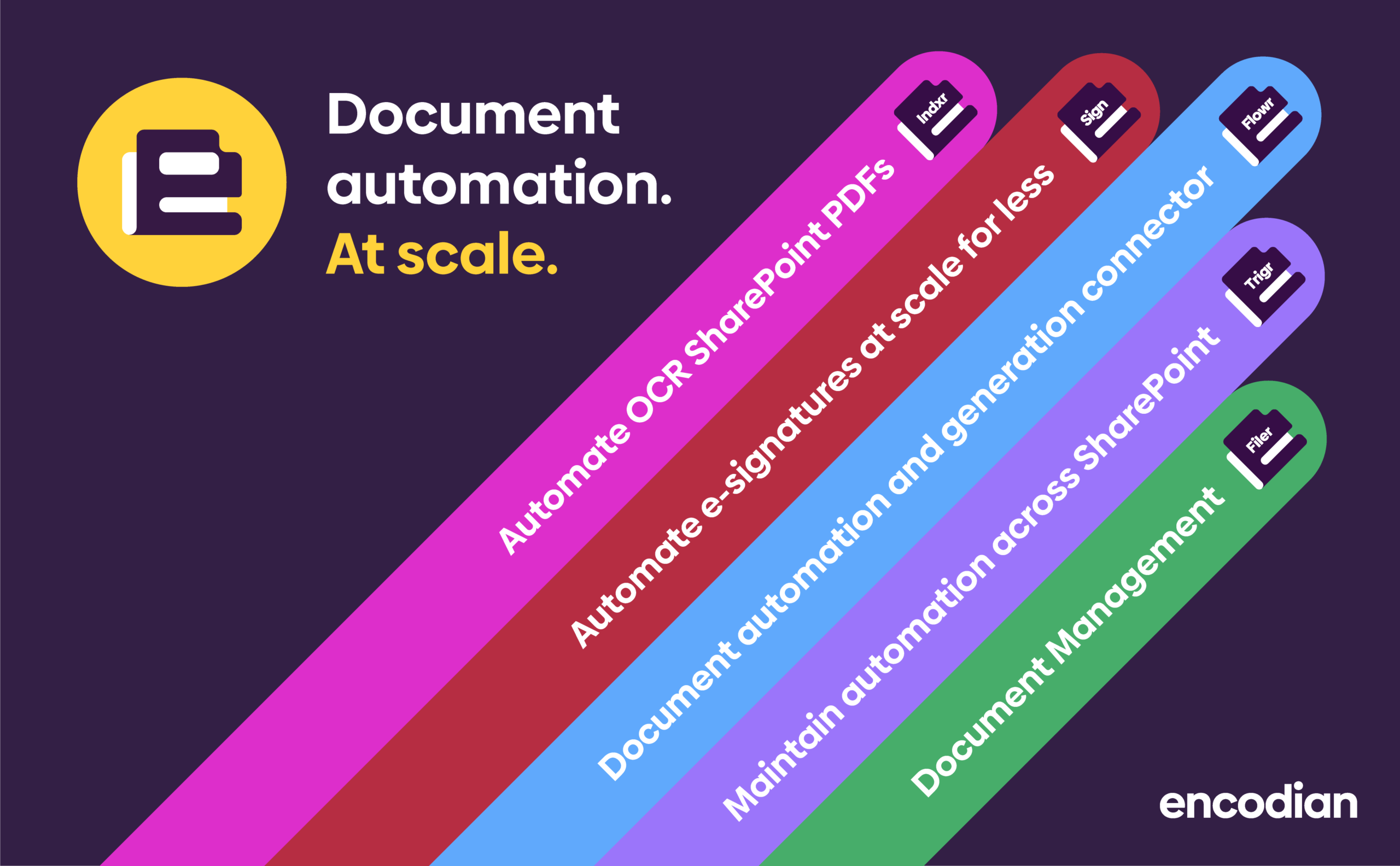 Encodian products are modular by design. Use them independently or combine them to build end-to-end document automation workflows.