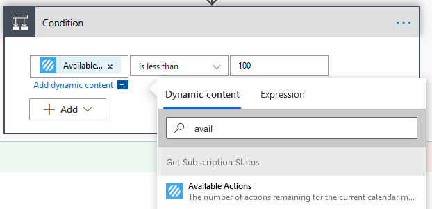 4.a. Select the ‘Available Actions‘ property and configure the operator and threshold value according to your requirements. For this example, I have set the operator to ‘is less than‘ and the value to ‘100.‘