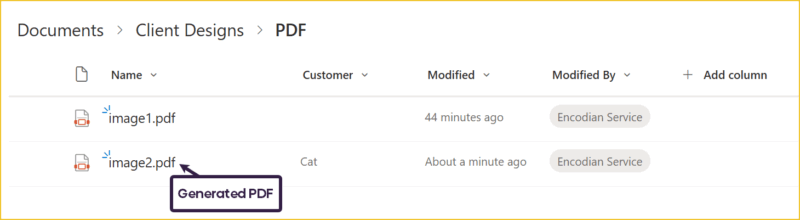 4. Saves the converted PDF to a SharePoint “PDF” folder.