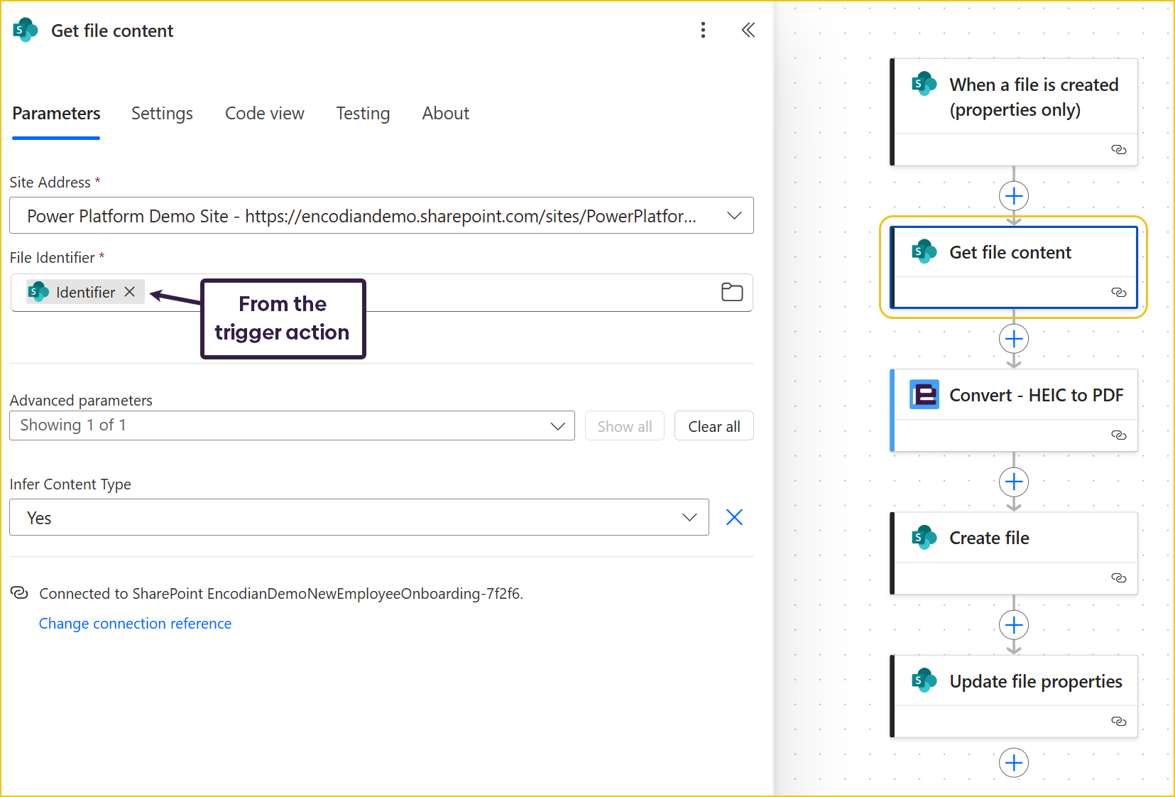 2.b. File Identifier: Select the ‘Identifier’ property from the previous trigger.