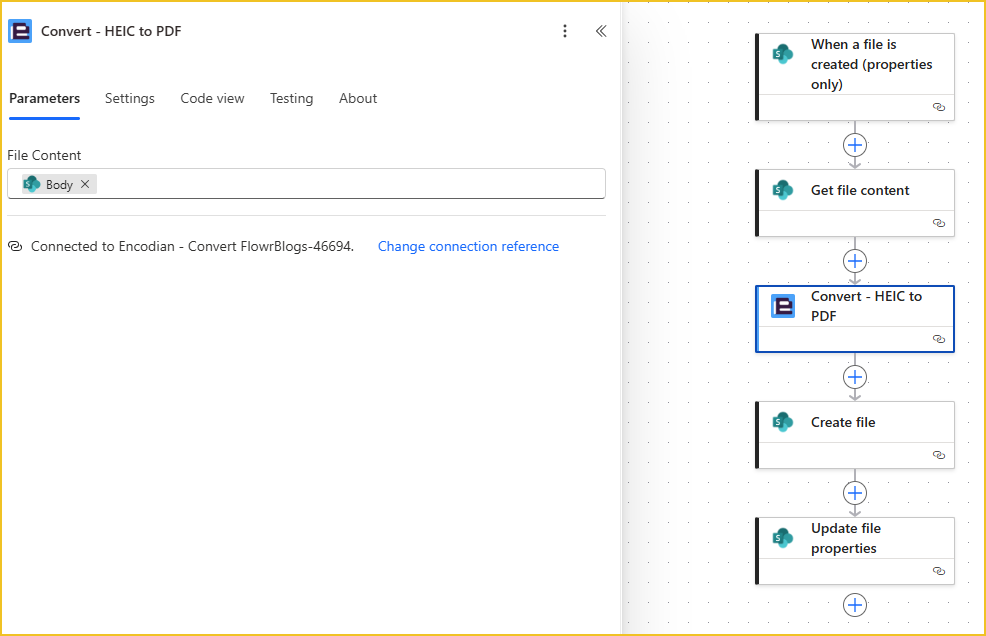 How to Convert HEIC to PDF in Power Automate using Encodian Flowr