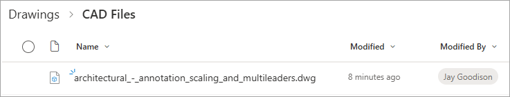 The flow configuration is now complete, and we can test by adding an example file to the ‘CAD Files‘ SharePoint folder: