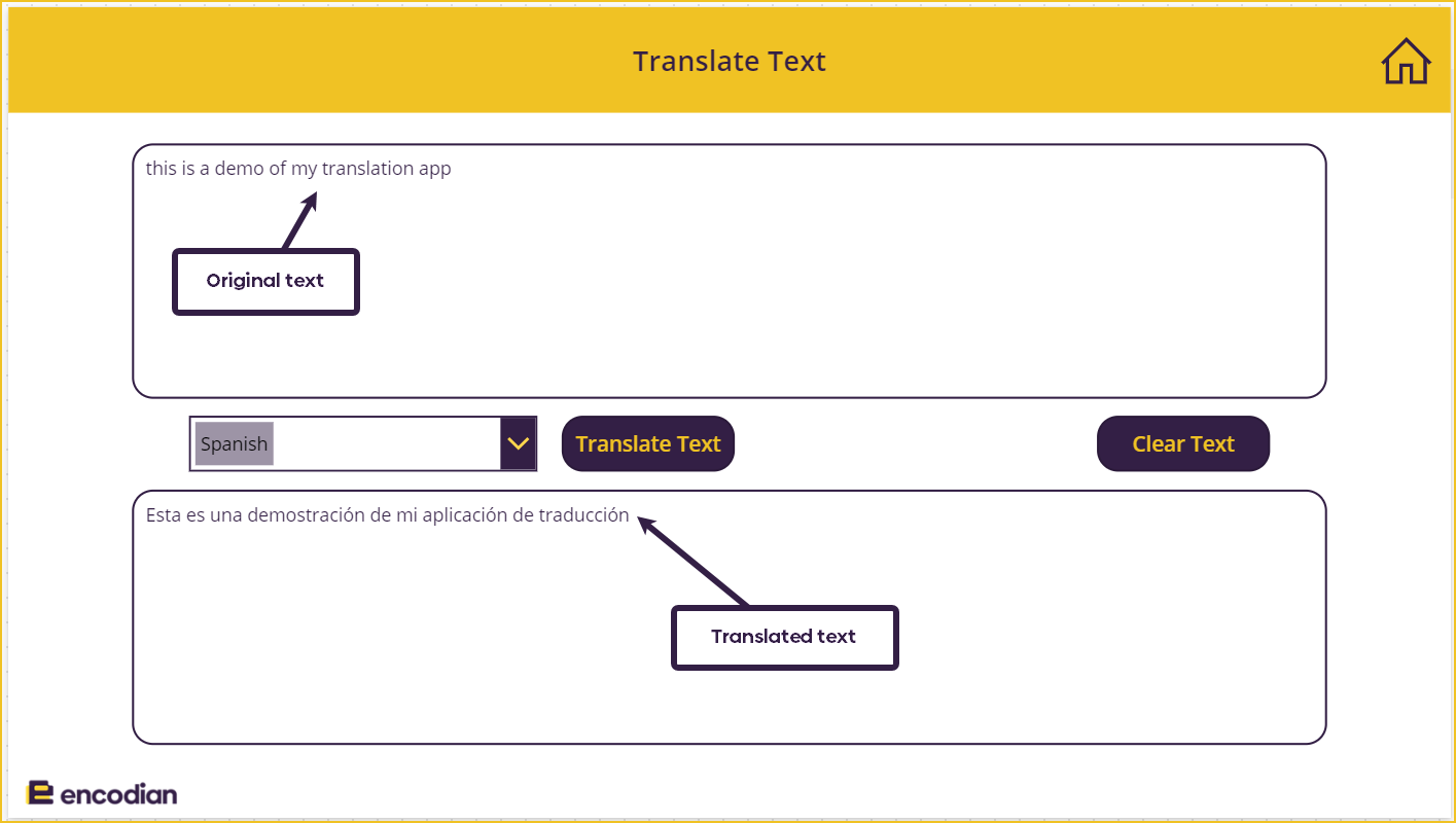 The bottom text input is disabled because we don’t need to type into it; it is just where the translated output will appear.