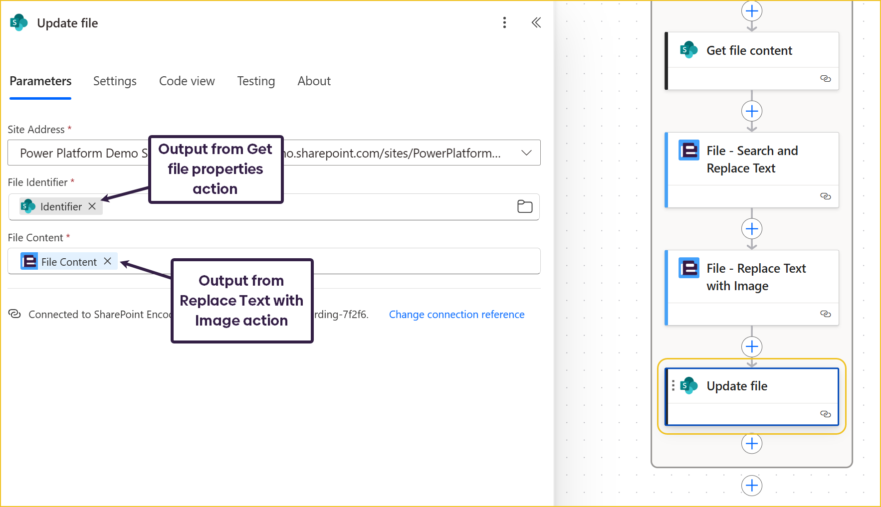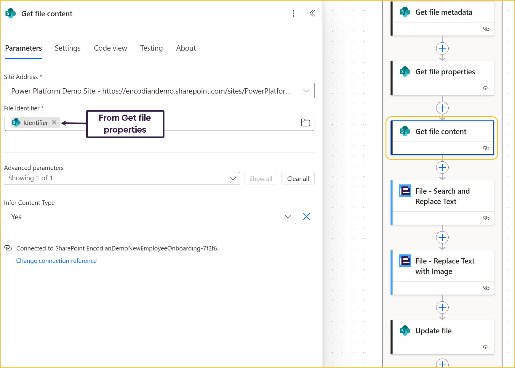 8.b. File Identifier: Select the ‘Identifier’ output from ‘Get file properties’.