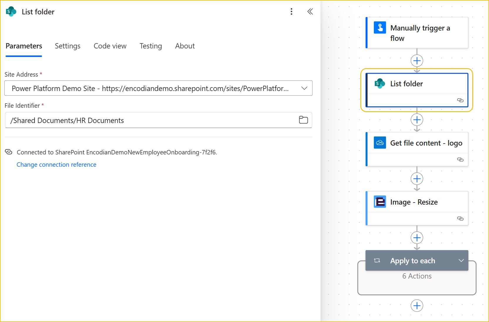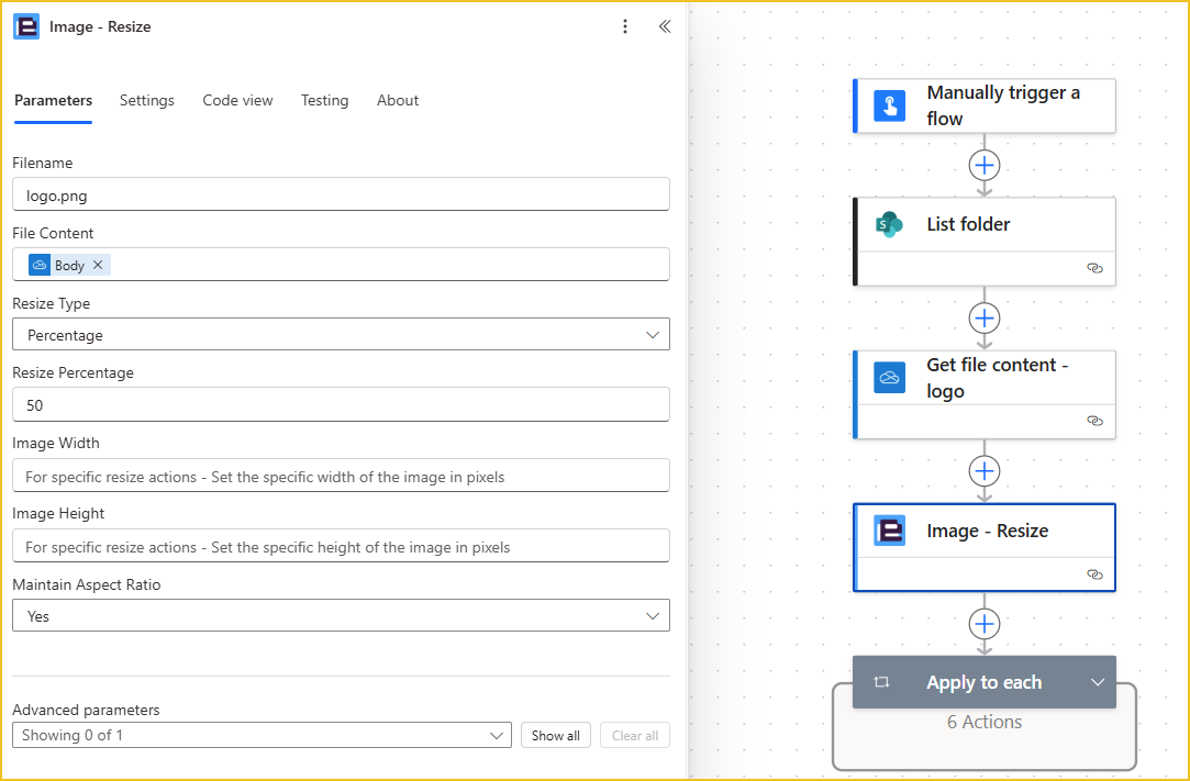 4.a. Action: Add the Image – Resize action from the Encodian connector.