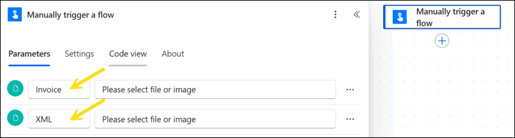 2.a. Create two ‘File‘ inputs named ‘Invoice‘ and ‘XML‘