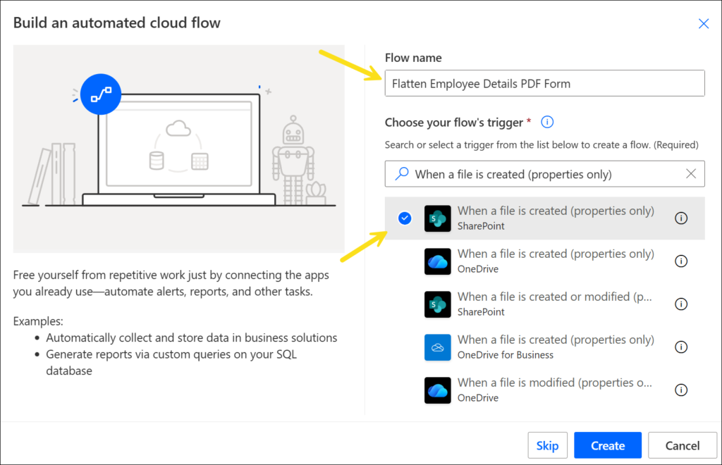 1a. Create a new Automated cloud flow