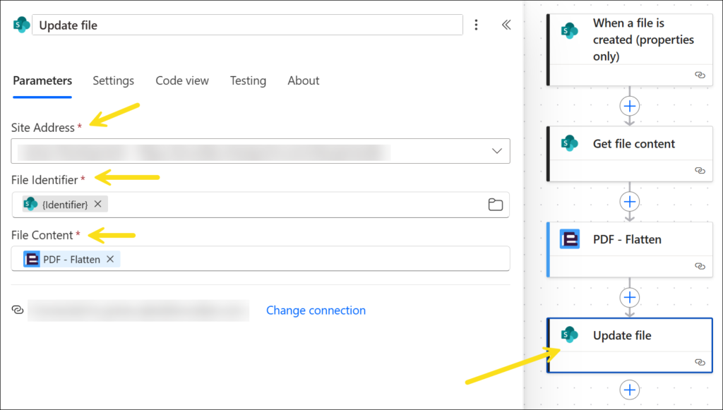 5a. Add action: Update file (SharePoint)