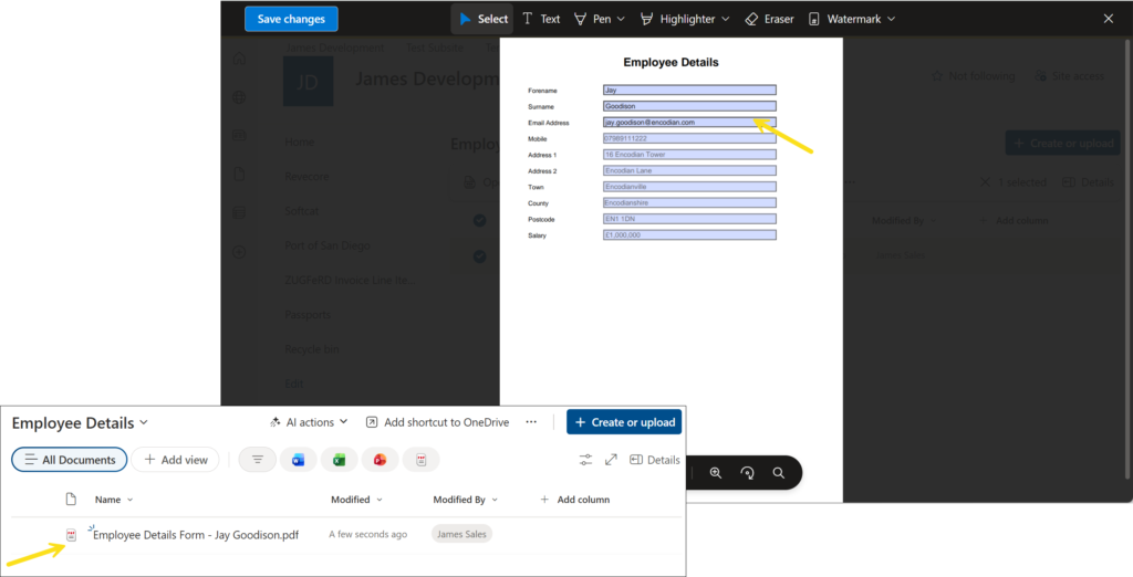 1. A completed PDF form (example: Employee Details form)